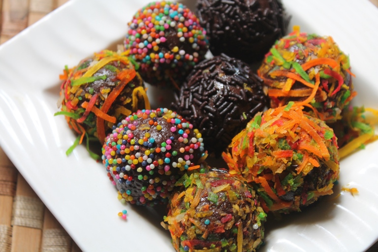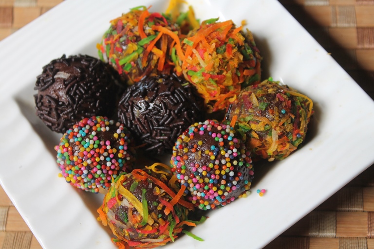 - Now coat this in sprinkles or coconut and put in fridge for 10 mins.