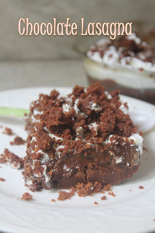 No Bake Chocolate Lasagna Recipe with step by step pictures. This easy, no-bake dessert is layered with crushed biscuits, cream, and chocolate pudding.