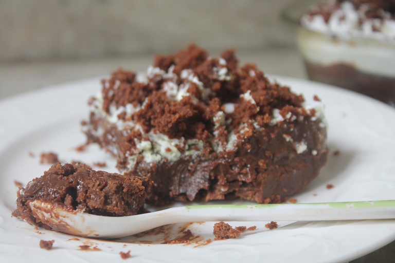 This taste so yummy. it was little dense but still creamy and tasty.. This has a buttery biscuit as the base and a luscious chocolate creamy filling which is then topped with a thick layer of cream. Really yummy. Hope you will try this out and let me know how it turns out for you.