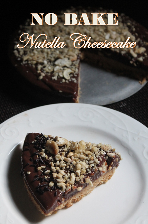 No Bake Nutella Cheesecake Recipe with step by step pictures. Delicious creamy nutella layer over buttery biscuit base.