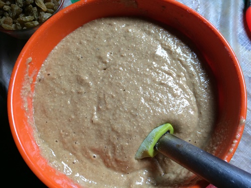 - Pour this into the dry ingredients and fold gently.Add in sultanas and fold gently.