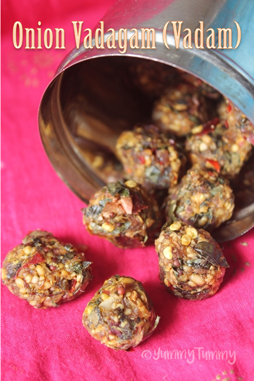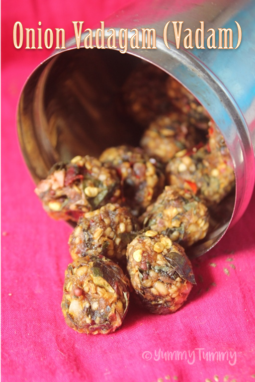 Vadam is a mixture of onions, urad dal, chillies, and variety of spices. This is dried under sun and used as tempering in chutney or any kulambu. Onion vadagam or thalippu vadam is a must have ingredient in south indian cooking.