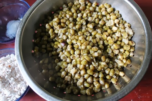 - Soak green gram in lots of water overnight or up to 8 hours.