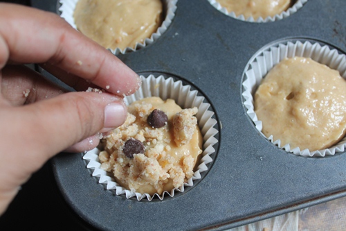 For Streusel Topping - Peanut butter, flour, butter, sugar and chocolate chips is used for the streusel topping. Rolled oats can be added in the topping.