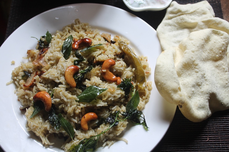 Ghee rice is usually accompanied with chicken curry or mutton curry.