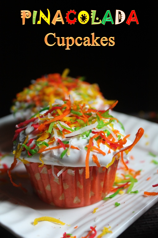 You all know my love for cupcakes. This one is inspired from the pinacolada mocktail which i had recently and it is so delicious with full of pineapple and coconut flavours. Delicious.