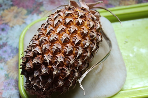 Pineapples - Pineapple has a distinct tropical fruit flavour that is both sweet and tart. Because the base of the fruit contains more sugar, pieces from that area will be sweeter and more tender.