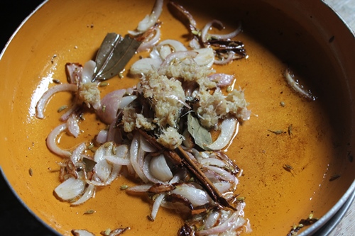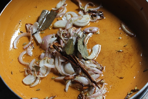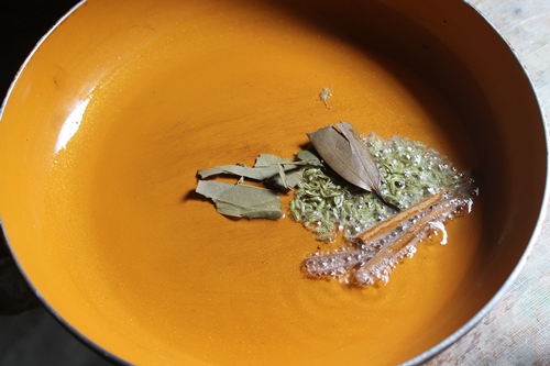 - Heat oil in a pan. Add in fennel seeds,cinnamon, bay leaf and let it sizzle.