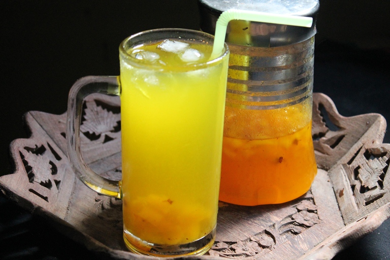 - When serving, pour little syrup in a cup and top with ice cold water and ice cubes. Enjoy.