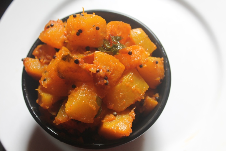 This is a quick and easy poriyal which is made using pumpkin. It is fast to make and needs just a handful of ingredients. Taste great with rasam or sambar rice or anything. This dish can be done in under 20 mins or so.