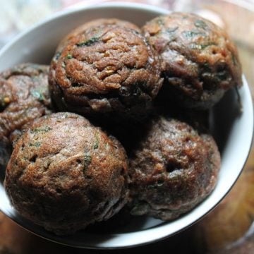 I use my non stick kuzhi paniyaram pan, it is my favourite. Because you can experiment with any of your own kuzhi paniyaram in this and it will make sure it comes off easily without sticking..This is my recent experiment and i loved it to the core.