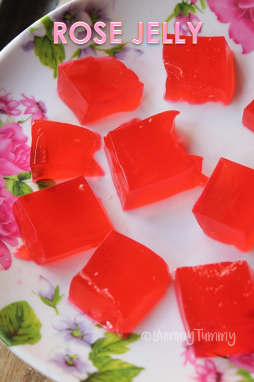 Simple rose jelly with step by step pictures. Delicious rose flavoured gelatin made using simple ingredients.