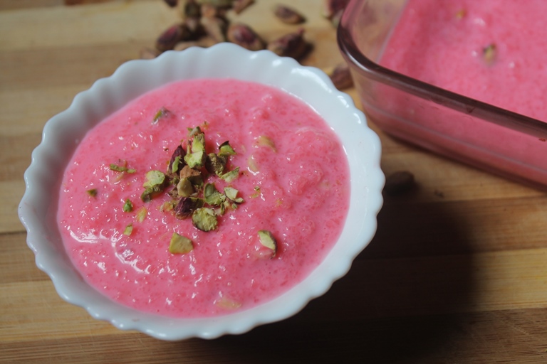 Aarthi this ia a gud idea of rose phirni.. butone point to e noted is your phirni looks watery, actual phirni's texture is like frozen icecream