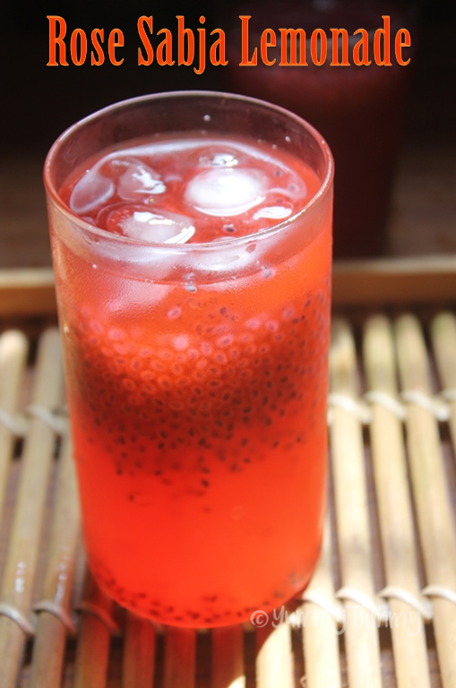 Rose lemonade is a cool refreshing drink on this hot summer day. It is really hot in my place and i am making lots of cool drinks. Sabja is one ingredients which naturally cools your body.