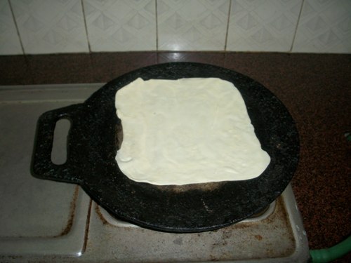 - Heat a tawa on high heat. Put the thin roti on the tawa and cook less than 20 seconds on each side until the roti is cooked slightly.