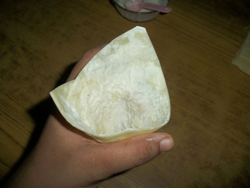 - Now put a spoonful of filling in it and seal it on all sides(see picture).