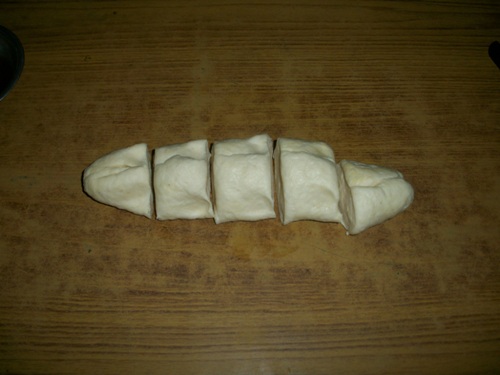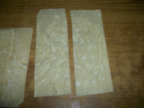 - Take it off the heat and cut in the shape of squares. Now slice it in the middle, so that you get a rectangle (See pictures for more detail). Now set this aside for a moment.