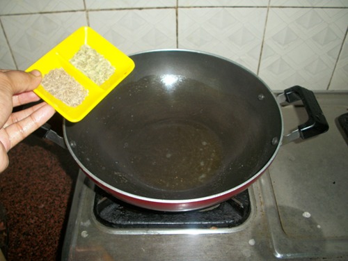 - Heat oil in a kadai..Add in fennel seeds and cumin seeds.