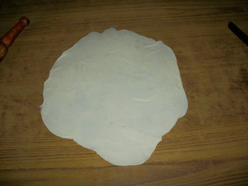 - Divide the dough into equal portion. Roll into a thin roti. Do this to all dough.