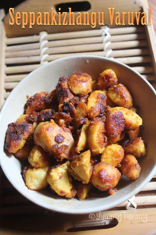 Seppankizhangu roast with step by step pictures. Easy taro root fry taste delicious with rice and sambar rice.
