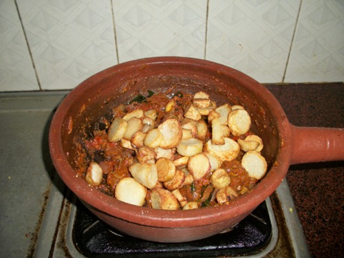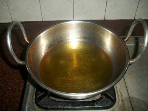 - Heat oil for deep frying and add the cut up pieces and fry till light golden. Remove and drain in a kitchen paper.