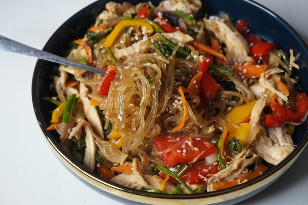 This week I'm on a mission to do fridge clearance and use up all the stocks before buying anything new. While doing this, I found a glass noodle packet lying inside the refrigerator, which I bought to make a Korean Japchae recipe. So, I decided to turn this into a super quick and easy protein rich noodle recipe. Chicken sesame noodles is a flavourful, satisfying recipe in a bowl and I made this with all the ingredients which have been lying around in my kitchen for a while.