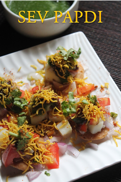 Sev Puri Recipe with step by step pictures. This recipe is a delicious bite-sized, Indian chaat snack which is bursting with sweet, spicy, and tangy flavors.
