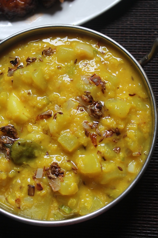 Bottle Gourd Dal Recipe with step by step pictures. This is made with Bottle Gourd and Yellow Split Moong Dal.