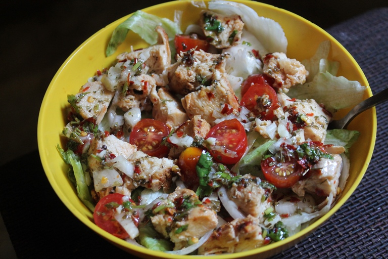 I enjoy making and eating salads, specially chicken salads are my favourite. I have already shared a grilled chicken salad recipe which was my all time favourite. Now this has become my favorite. Not only because it is easy to make but it is really delicious and packed with full of protein and flavors. This is a warm salad so it makes a satisfying one bowl lunch or even dinner.
