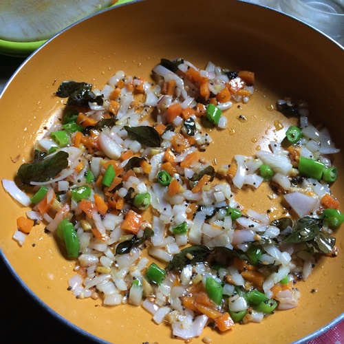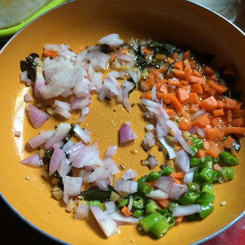 - Add in onions, carrots, chillies and saute well.