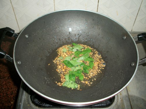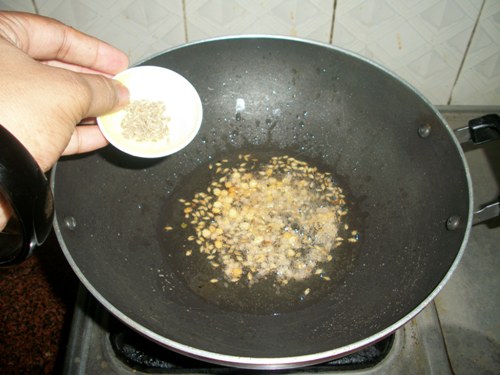 - Heat oil in a pan. Add mustard seeds, urad dal, cinnamon and fennel seeds. let them sizzle.
