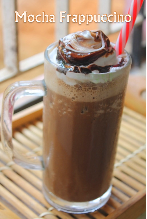 Starbucks Mocha Frappuccino Recipe with step by step pictures. This is made with Freshly brewed coffee,Chocolate Syrup and Whipped Cream.