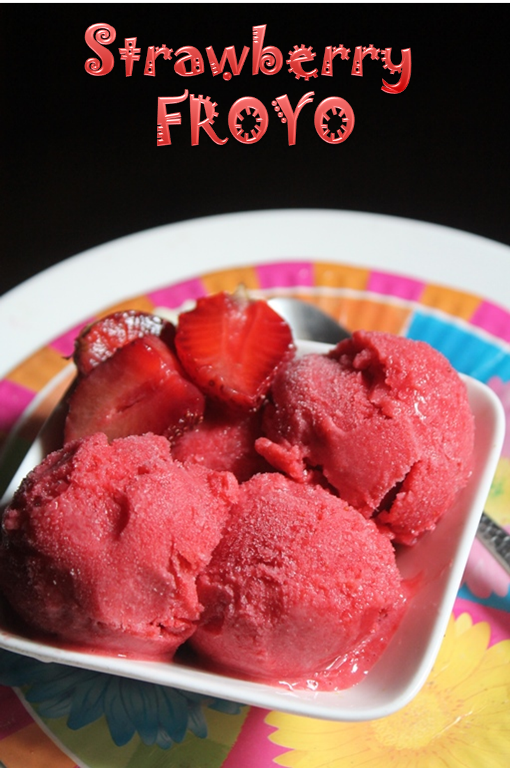 Strawberry froyo recipe with step by step pictures. Frozen yogurt made with strawberries taste delicious on hot summer days.