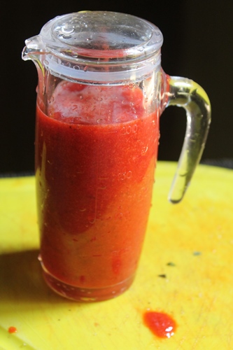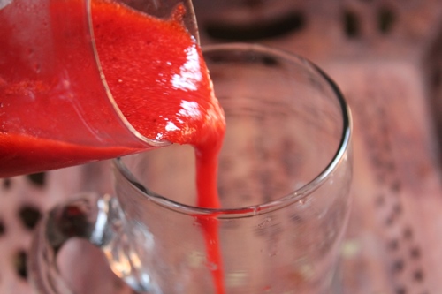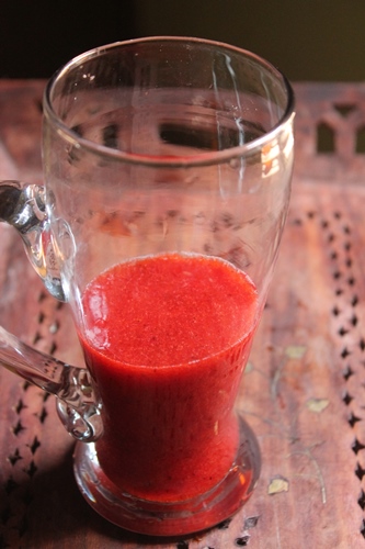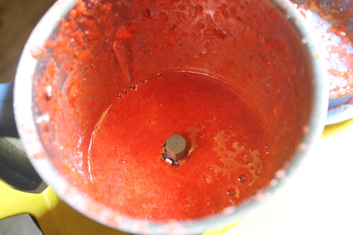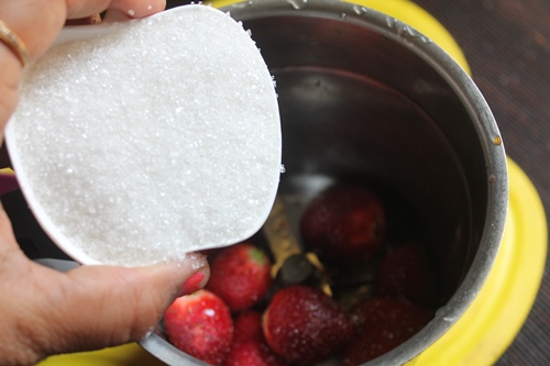 - Take strawberries, sugar and lemon juice in a blender and puree till smooth.