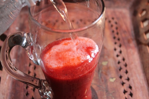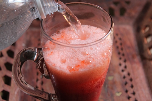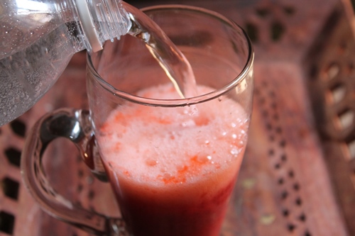 Strawberry Soda Recipe with step by step pictures. This is made with Strawberry, Lemon Juice and Soda.