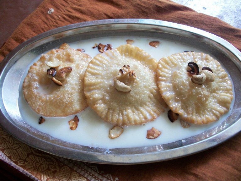 Paal Poli Recipe with Step by Step pictures. Milk poli is Fried Poori's Filled with Khoya & Soaked in Creamy Milk Sauce.
