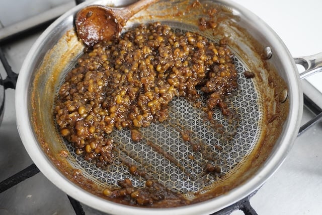8)Allow the beans to cook in this sweet syrup until it gets thick and caramelized.
