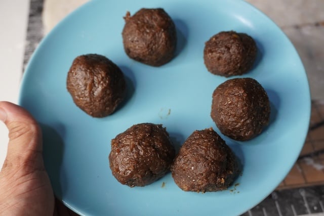 23)Now take the bean filling from fridge. Divide into equal balls.