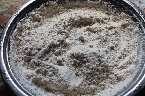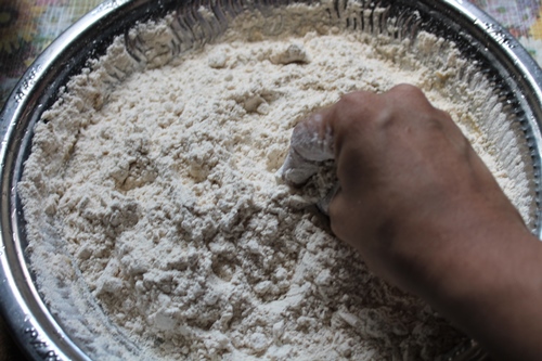 - Start by making dough, take flour, salt, oil in a bowl. rub well so oil is mixed in with the flour.