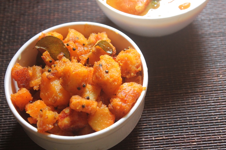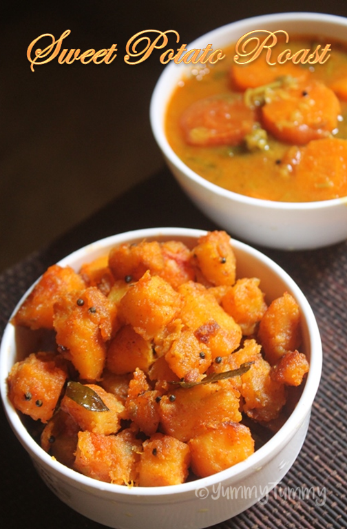 Sweet potato poriyal taste really delicious. The sweetness from the potatoes gets intense when it is cooked. This goes well with rice, sambar or any gravy.