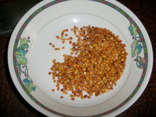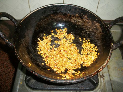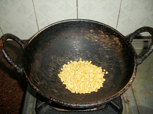 | Roast Toor dal in a tiny bit of oil |