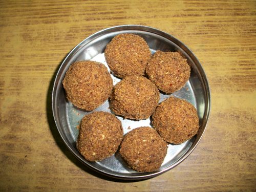 - Take the fried chillies, coriander seeds and toor dal in a blender and make in to a powder.
