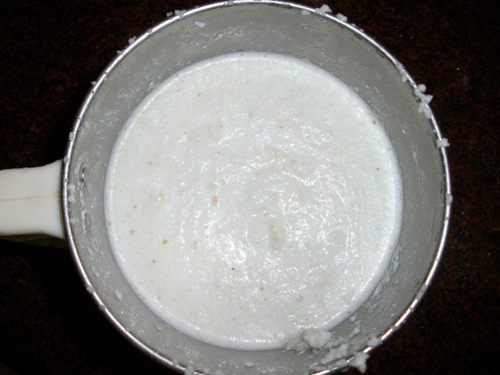 - Grind Coconut and green chilli to a fine paste by adding some water.