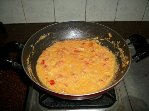 - Pour in the coconut paste and mix well. Cook this for 3 mins.