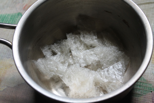 - Now take china grass and place it on heat. Heat on low heat till the agar agar is melted.