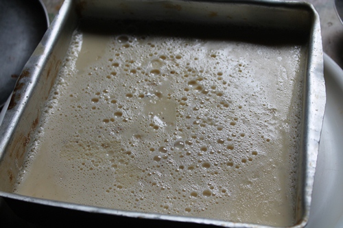 - Grease square pan with little oil. Set aside.