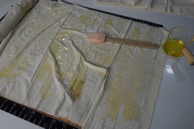 Olive oil : Olive oil is used to brush the pastry sheets, which will turn them super flaky and crispy while baking. You can also use a mix of oil and butter for brushing.
