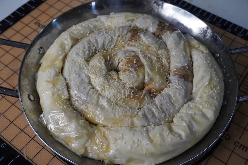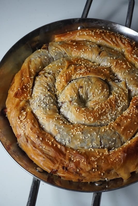 Assembling variations : Here I assembled the borek like a spiral. You can try with other looks like layering the phyllo sheets like lasagne or fold them into triangles like samosa.