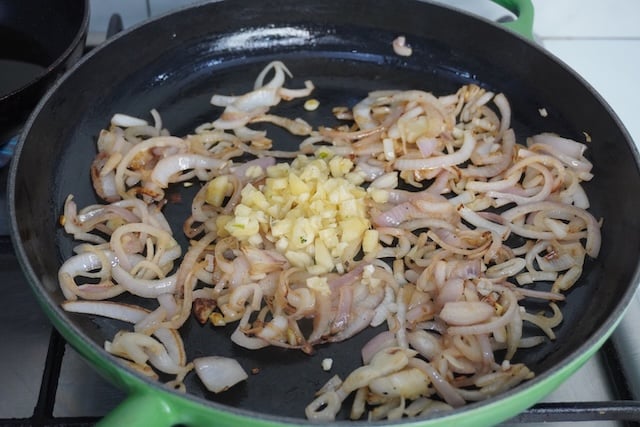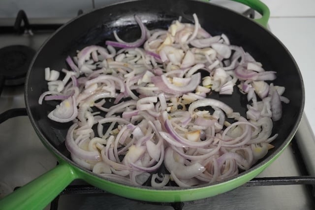 Onions : I have added 2 thinly sliced onions. Cook the onion until it caramelizes, so that will add mild sweetness to the filling.