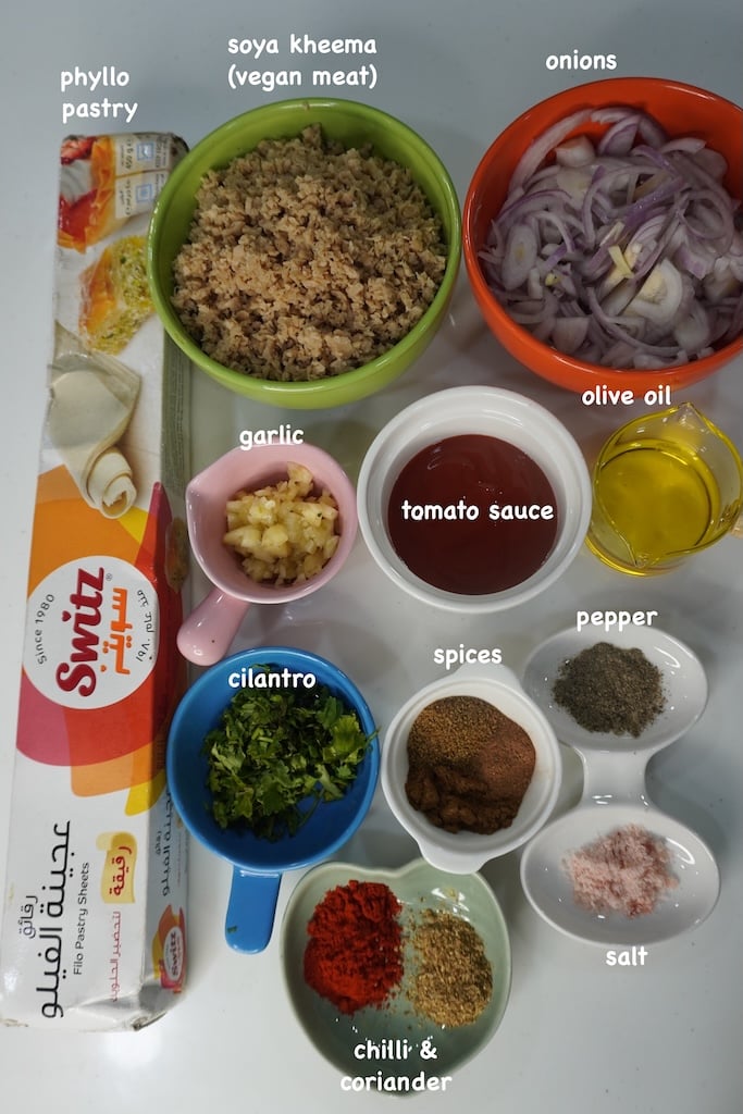 The recipe is so simple to make and you can easily made this vegan borek recipe with a flavourful soya filling. The soya is cooked with olive oil, garlic, onion, spice powders and cinnamon. The soya masala is wrapped inside the phyllo sheets and baked till it is golden crispy.